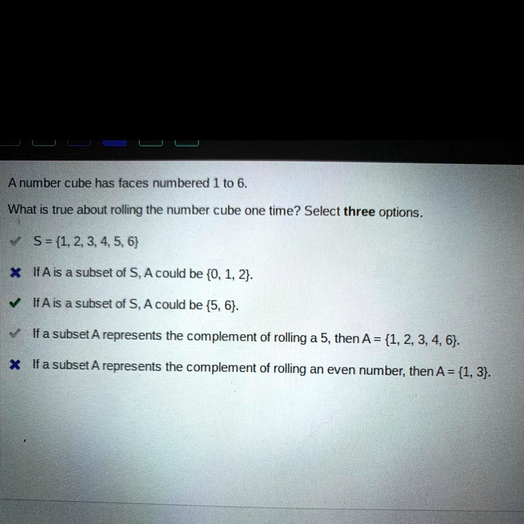 Solved What Number Cube Has Faces Numbered 1 To 6 Anumber Cube Has Faces Numbered 1 T0 6 What Is True About Rolling The Number Cube One Time Select Three Options S 1 2